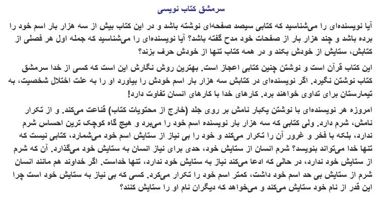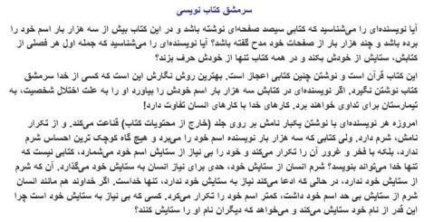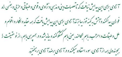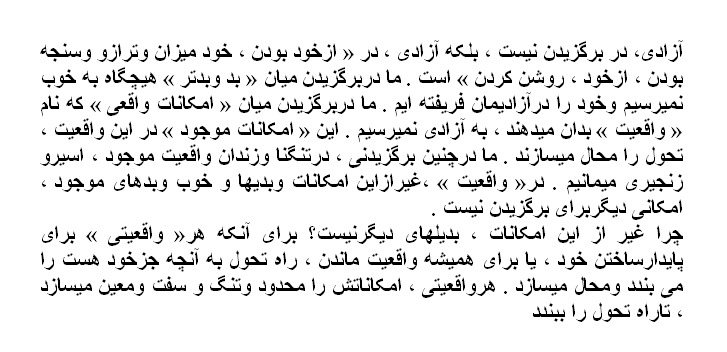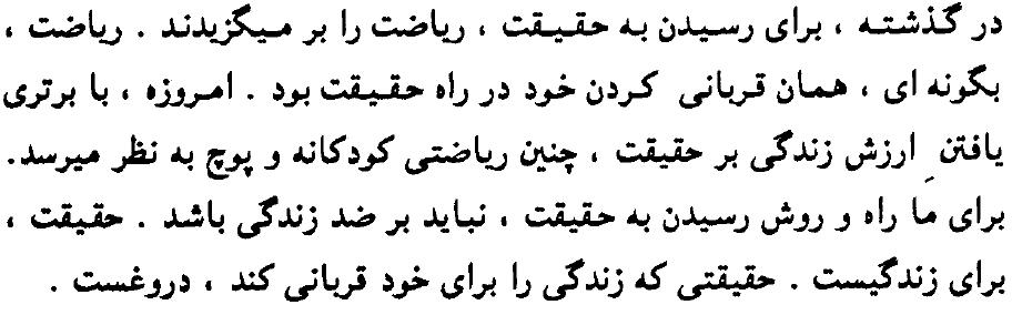 ما تمام اوقات خود را، خرج تبلیغات افکاری میکنیم که به عنوان ِ«مُدرن و پیشتاز و تجدد و روشنگری» از دیگران به ذهن سپردهایم و سراپا شیفته آن شدهایم. اگر اندکی از این نیرو را صرف اندیشیدن ِاز خود، و صرف انگیختن مردم ایران به اندیشیدن از خود میکردیم، از خود، پیشتاز و نو زاینده میشدیم، و از«نو شدن ِعـاریهای» ننگ داشتیم.