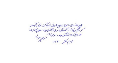 خون بها را خوردن، عین خون خوردناست. اگراو کارنیکی میکرد، من او را سرمشق خود قرار میدادم. ولی کار بد ِدیگری را سرمشق خود قرار نمیدهم. خون زندهای را ریختن، هرچند هم مجرم باشد، خونریزیاست و عمل شومیاست. »